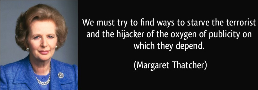 After listening to Today today I’m struck by a rather uncomfortable thought. In discussions about climate change and the renormalisation of smoking through e-cigarettes it became obvious there is a clear and present danger from those who deny the science that says both are wrong. To the BBC’s credit the discussion on climate change focussed exclusively on what to do about this clear and present danger – false balance between the anti-science idiots and the 97% (of climate scientists who agree) is no longer tenable, it was conceded. So my question is, evil though she undoubtedly was in many ways, was Margaret Thatcher right all along to say we need to starve the bullies, the deniers, the ‘terrorists’, of the oxygen of publicity? After all, if people have an active interest against the real stuff – climate deniers preferring CO2, and e-cigarette pushers preferring glycol vapour – why should we allow them the publicity version? Is this the one small concession we can make to Thatcher’s legacy? I never thought I’d say it, but maybe on this issue she was spot on.