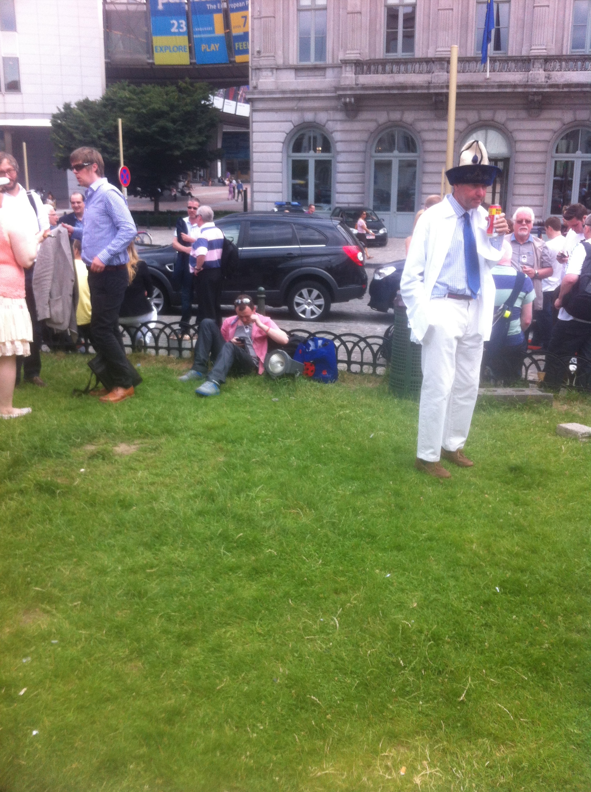 A bit of good luck: head of Caerphilly Council Len Jones, wearing the ceremonial Caerphilly Council hat, makes a welcome addition to our number. He invites us back to Tredomen later and reveals a spectacular scheme.