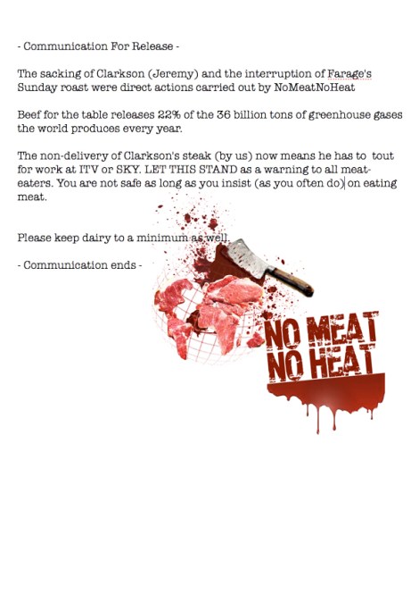 NoMeatNoHeat claim March 26, 2015 · by Marcus Toynboyalé · Bookmark the permalink. · From the NoMeatNoHeat climate action group, today. Interesting. Fuck me. Maybe we’re getting somewhere. Share this: Click to share on X (Opens in new window) X Click to share on Facebook (Opens in new window) Facebook Like Loading... Related
